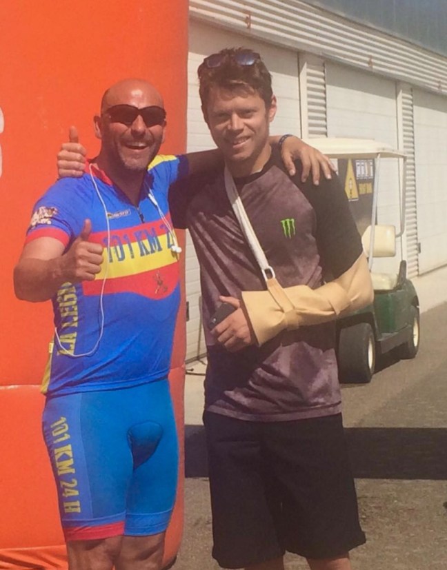 Cuál ha sido mi sorpresa cuando en una de mis paradas uno de los espectadores es alguien tan querido para los aficionados a las motos como Tito Rabat, que buen tipo, se ha parado con todos nosotros y, con su brazo recién operado, se ha hecho fotos con todo el que se lo ha pedido, bueno en la pista con o sin moto, un crack.