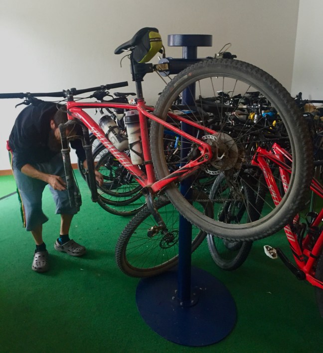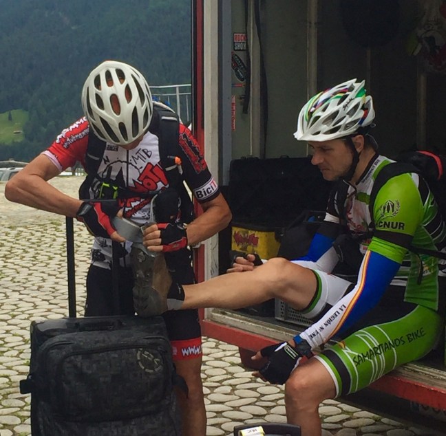 El día empezaba preparando las bicicletas para las dos bajadas, rápidas y muy inclinadas que nos esperaban. Y nos encomendábamos a todos los Santos para las dos subidas de esta etapa.