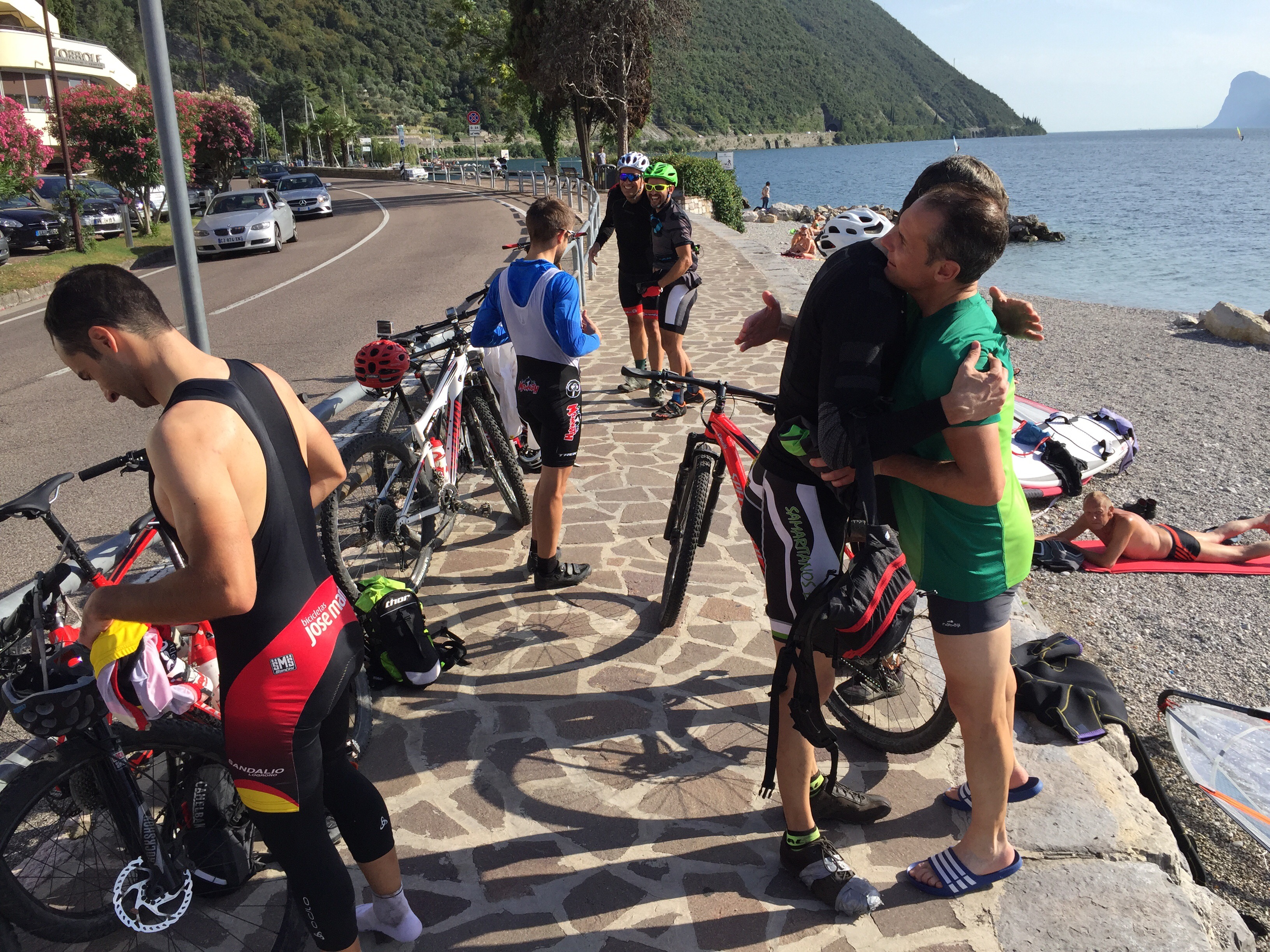La llegada con las vistas desde la altura del Lago di Garda, primero nos han dejado sin habla y luego la adrenalina se ha manifestado en forma de gritos de emoción.