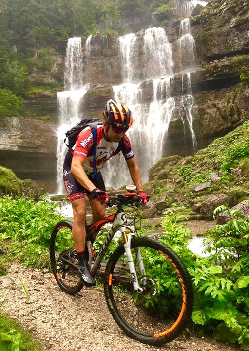 Empezamos por un sendero muy técnico y que al estar mojadas las piedras y las raíces nos hizo poner pie a tierra y yo incluso volé aunque sin consecuencias, pero mereció la pena porque nos llevó hasta una cascada preciosa.
