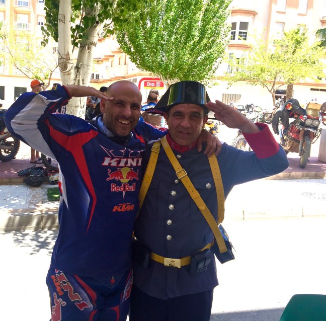 La noche en el camping fue divertida con concierto incluido, la comida del sábado en Macael estuvo acompañada por las fiestas del pueblo donde celebran que las canteras de mármol pasaran a manos del pueblo y junto con la entrega de medallas tres grandes paellas regadas con litros de cerveza para saciar la sed que nos dio el polvo, que por la época del año y la zona también lo hubo.