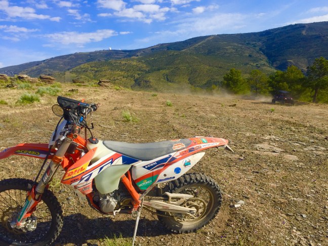 La sensación de libertad que te da saber que, aunque hay casi doscientas motos rodando por los mismos caminos que tú, vas kilómetros y kilómetros tú solo navegando con tu roadbook y te encuentras con vistas tan impresionantes como las que te da la Sierra de Gador cuando la coronas y ves la mezcla del mar de plástico con nuestro mar Mediterráneo y no eres casi capaz de distinguir uno de otro.