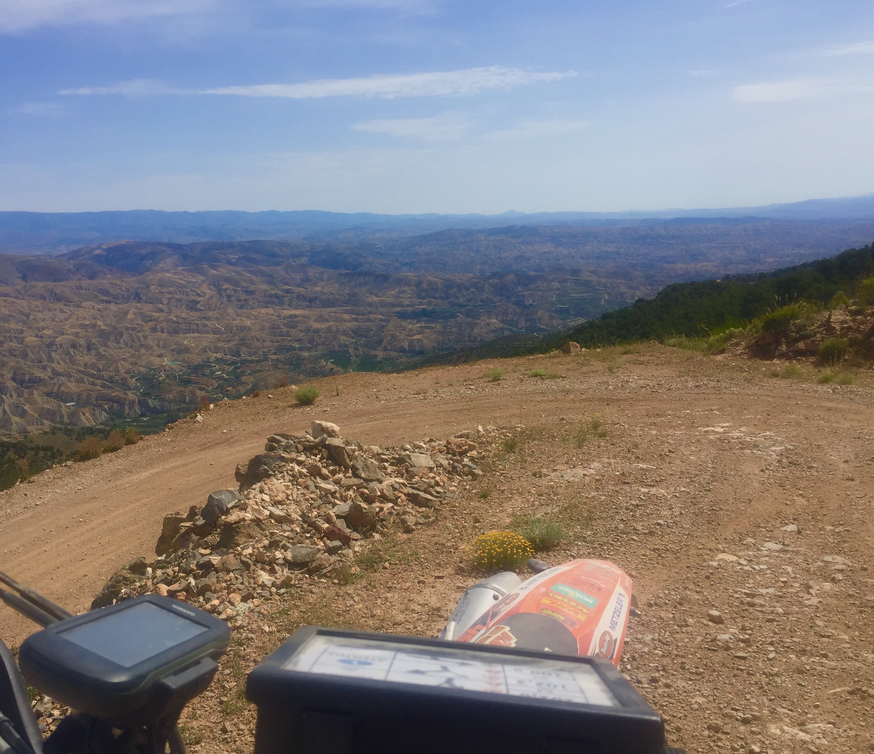 La sensación de libertad que te da saber que, aunque hay casi doscientas motos rodando por los mismos caminos que tú, vas kilómetros y kilómetros tú solo navegando con tu roadbook y te encuentras con vistas tan impresionantes como las que te da la Sierra de Gador cuando la coronas y ves la mezcla del mar de plástico con nuestro mar Mediterráneo y no eres casi capaz de distinguir uno de otro.